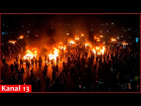 Everything on fire - Iranian state TV broadcasts footage of street fires...